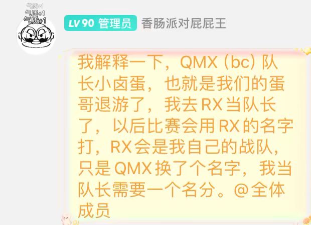 据小卤蛋直播间所知:下一届RX战队人员为屁屁王(BC.Pigg)、小小明(BC.大海)、毅毅(BC.超哥)、安安,也就是原BC的四个人,小卤蛋好像退出不知道换谁
