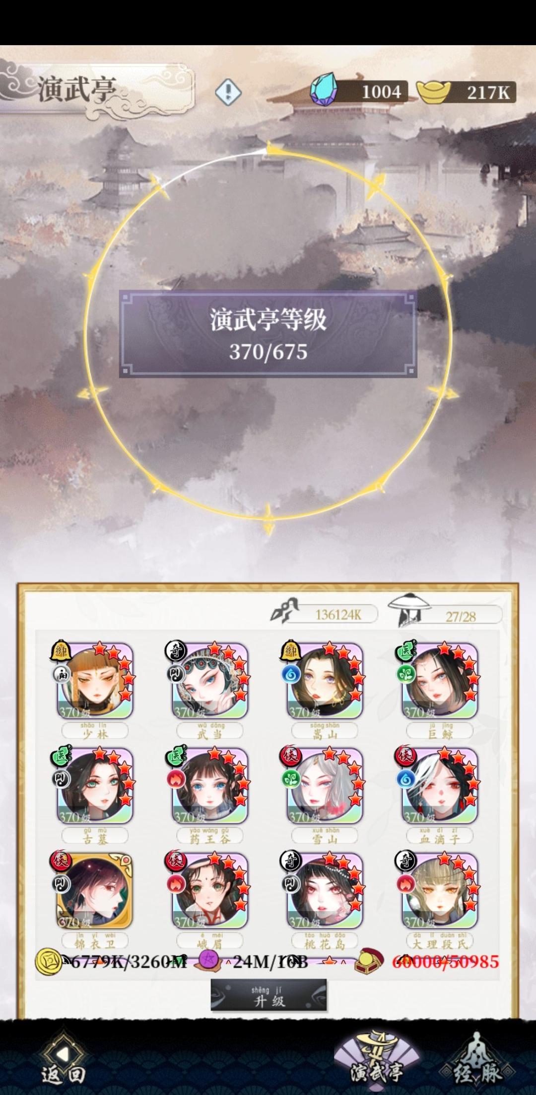 看看明玉大佬。591级。奔600了。我们呢。300左右400级徘徊,装备进阶满彩+2 ~神兵+40~ 心法满红+2~ 参悟+20~ 这些基础上去了。只要埋头升演武亭等级!!重要的事说三遍!演武亭演武亭演武亭!演武亭升级要啥?元气丹!!!买啥都别放过打折的元气丹!当然。钱多不打折也可以买