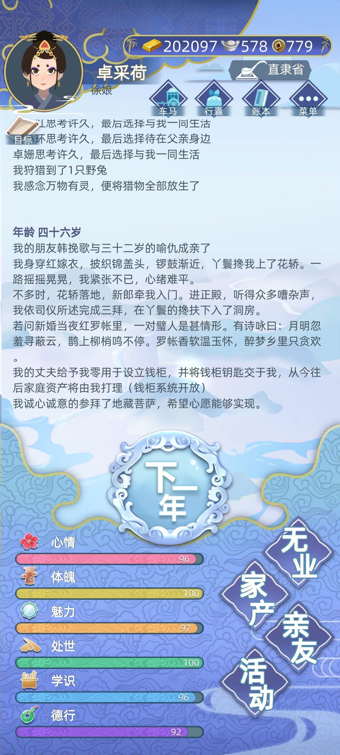 然后我去拜佛放生一波把德行加上来,我爸接着给我找老公,重复了好多次。确定可以无限叠加,我懒得肝了,然后就只找了12个,够了。也满足了