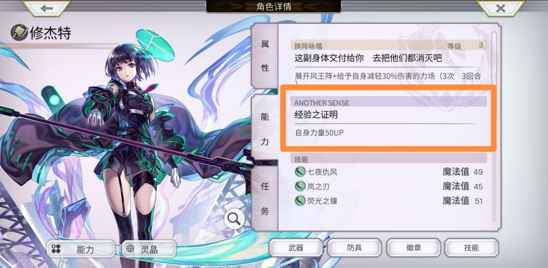NS和AC的星星都是黄色,如何判定自己这个是NS还是AC呢?答案是看能力界面是否有AC角色专有的Another Sense能力,有就是AC角色: