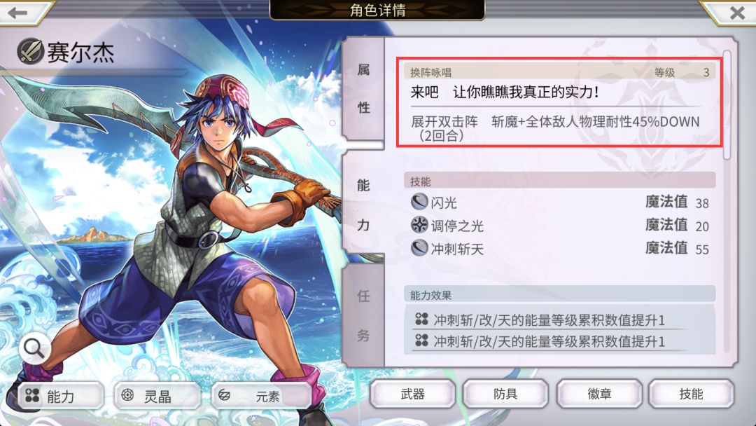 新人重要提醒:艾尔席儿会将前排<水>个性队友的攻击类型改成力量加成的斩攻击,也就是说你带上法师(比如泰坦妹),会变成类似法师拿法杖砸人的操作,会倒扣很多伤害!一定不要胡乱凑队!