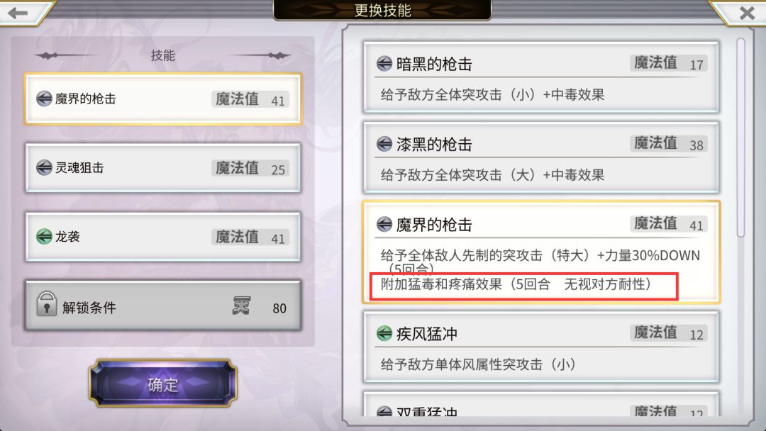 真专武中二有个先手必上毒痛技能,没有合适的人的时候可以考虑给风狼打辅助,自身也有不错的输出倍率。