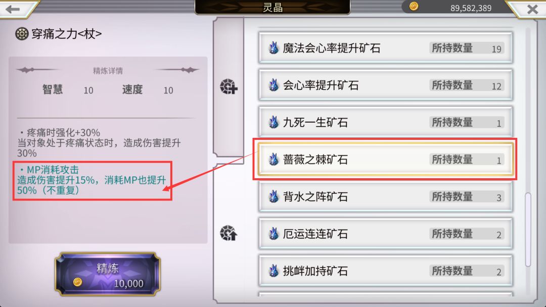 换阵咏唱可以通过角色专属的“XXX之证”灵晶获得效果强化。VC技能示例: