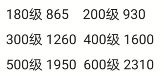 成长公式:0.0005x²+2.15x+210