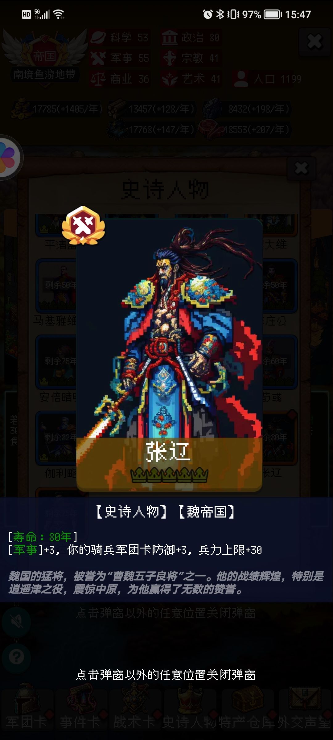 张辽:军事+3、骑兵+3速30兵力。商店可肝。