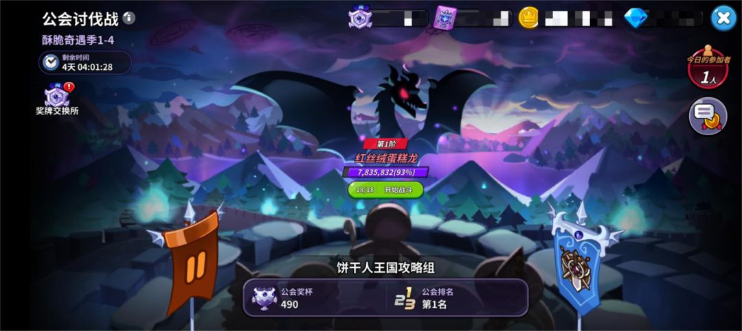 等级提不上去或者饼干数量质量暂时没有那么高,也可以不追求极致的输出,用最强的饼干就好。但是单个赛季的次数还是推荐尽量打完,参与讨伐的成员越多,完成讨伐所获得的公会奖杯数也会越多,前期注重攻打的数量就好。