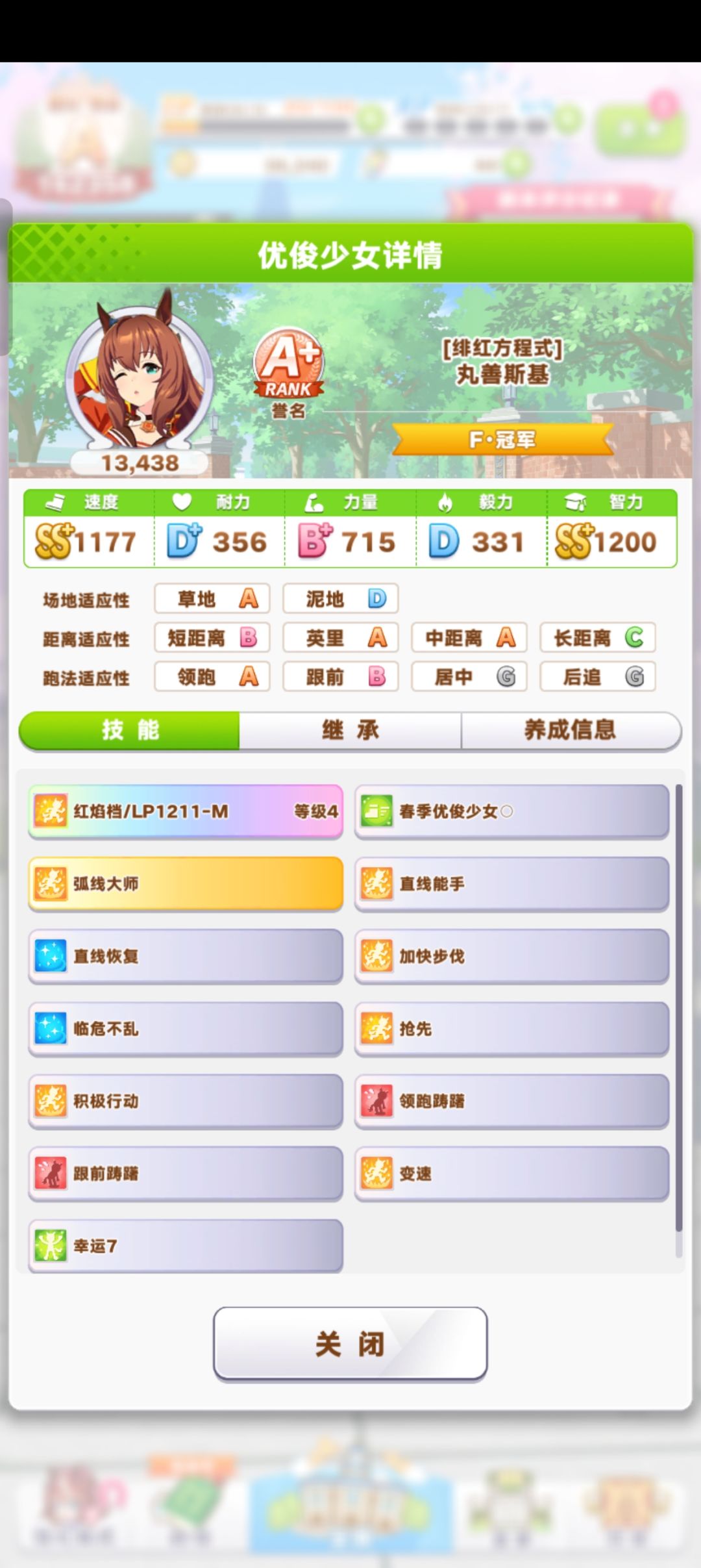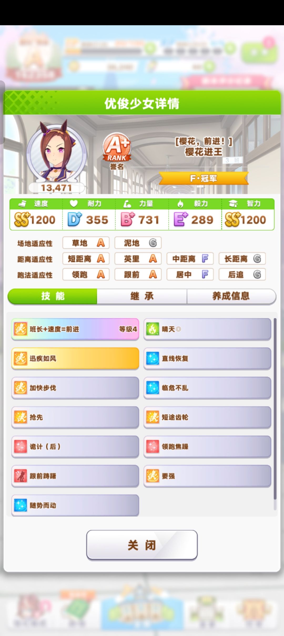 至于因子这方面我还在摸索中,但是目前能确定可以出的就是,转跑英里跟短距离的G1赛事大概率获得速度三星因子。春秋短途赛跟春秋英里赛必须拿下。后续因子摸索着,确保能出后再跟大伙分享