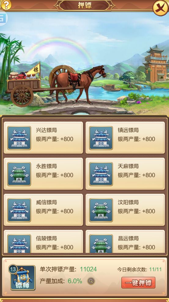 1.镖师等级提升会解锁相应的镖局,每激活一个镖局会增加银两产量。