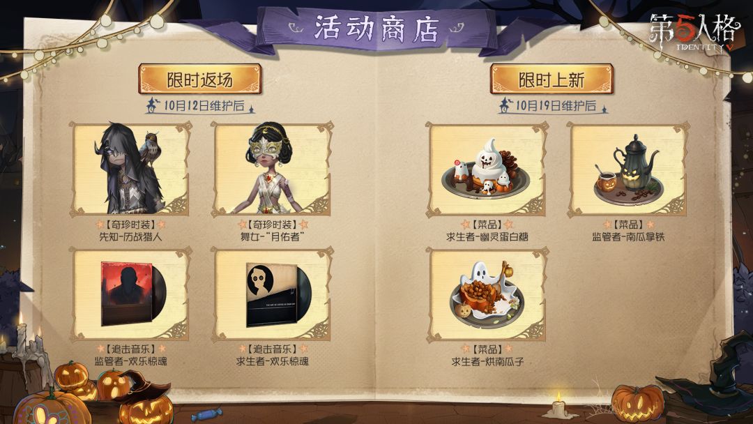 ※10月12日维护后,主题预热活动、主题装饰和“月夜逃脱”玩法限时开启。同时,游戏商城返场和活动商店返场上线。