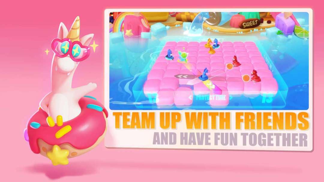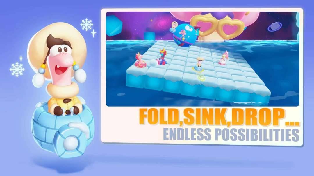 游戏包含折叠、下沉、掉落等不同形式的比赛,可以点击“推”将敌人推开,或按住“诡计”给他们一击,通过战略性地设置陷阱来智胜敌人。玩家可以1 vs 1战斗,或与朋友联手进行三人(3 vs 3 vs 3)团队挑战。游戏后续会加入地图设计玩法,来和朋友一起在立方星系的独属空间游玩。