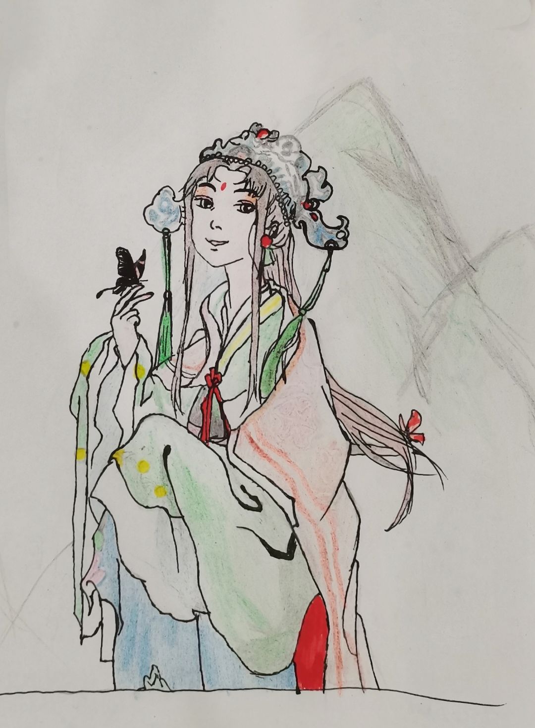 下午抽到祝英台,非酋如我非常高兴,准备画一个英台姐姐庆祝。
