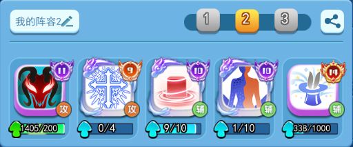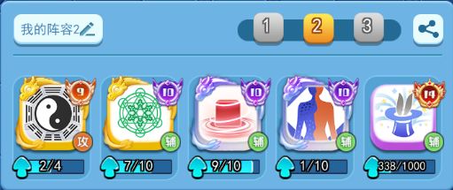 攻击阵容2:太极+支援+进化+魔形+魔术