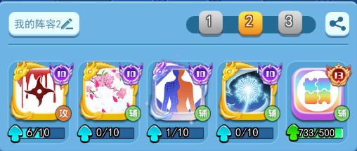 攻击阵容1:刺杀+落樱+魔形+蒲公英+百搭
