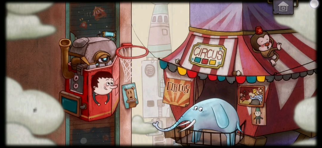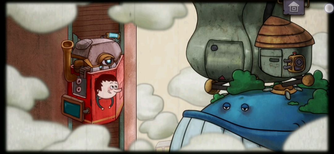 点击右侧机器箱👉解决唱片谜题👉打开两扇门和一旁房子的屋顶👉点击扳手👉点击松好的齿轮👉拉下转东轴边的开关👉点击九宫格,解决八宫格谜题👉拿到能量地球