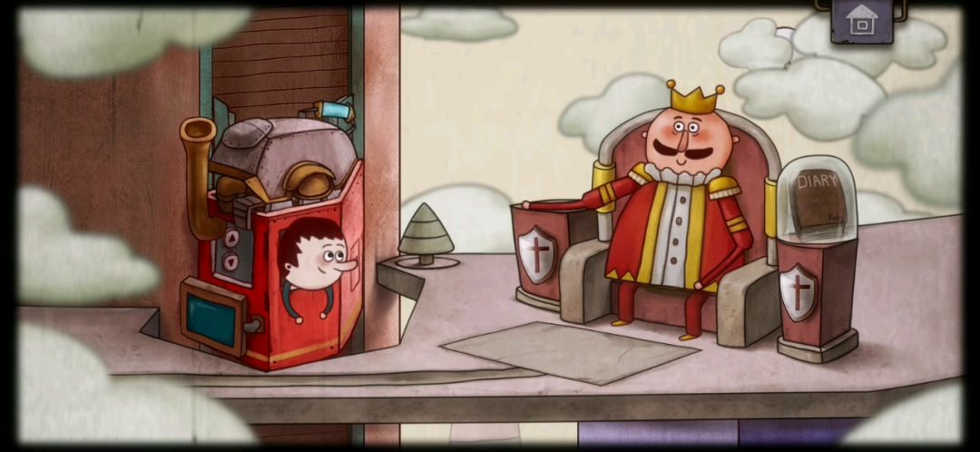 点开右边盾牌👉取出蓝色雨滴模型👉点击右上角云朵,拨开外围云层👉得到白色云朵模型👉点击国王座前地板👉升起地图版👉将云朵模型和雨滴模型放到地图上的相应位置👉得到小黄鸭👉将小黄鸭放置到地图上的相应位置👉点击地图版左侧的树👉解决树谜题👉得到树模型👉将树模型放到地图上的相应位置👉得到镜子,点击镜子👉点击右侧的书本使得镜子朝外反射光芒👉得到红心模型👉将红心模型放置到地图上的相应位置👉拿到能量地球