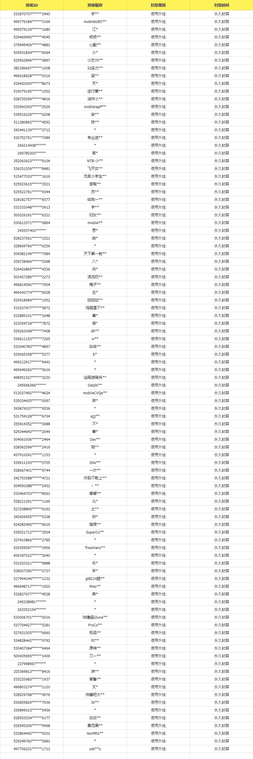 10月7日违规封禁名单如下: