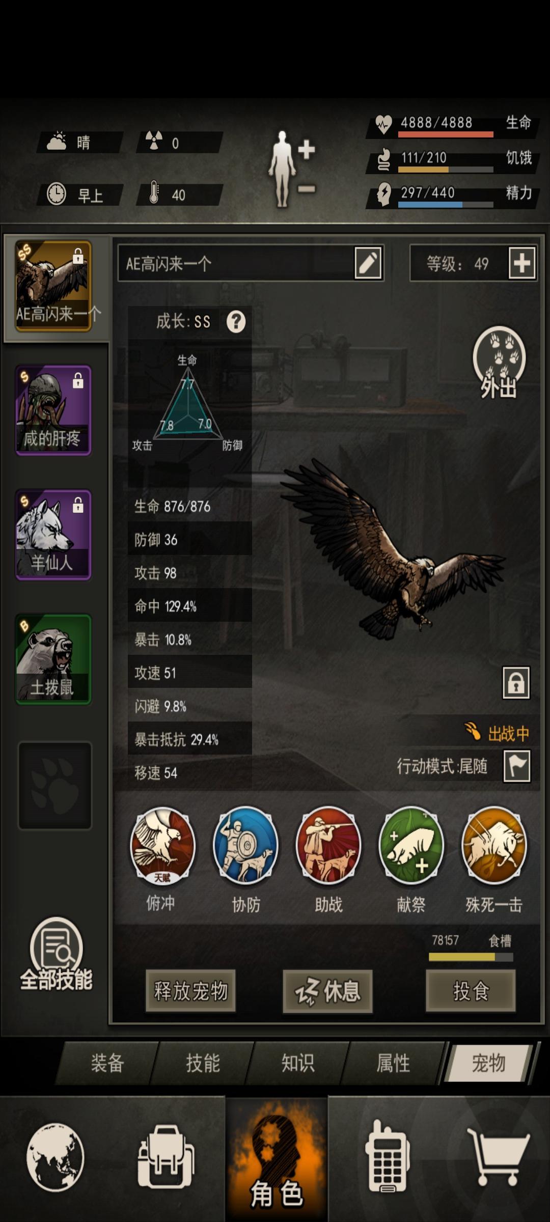 整体属性如下,血量-30暴击-1就是原本的属性,对比步枪的宠物可以说是天差地别了,但是打起来结束时间却是快好多