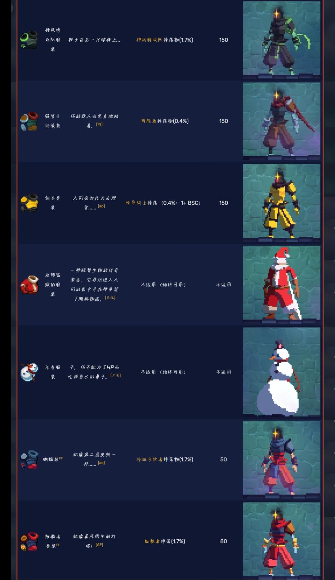 图鉴来源于死亡细胞wiki(中文版wiki翻译更准确但不更新)