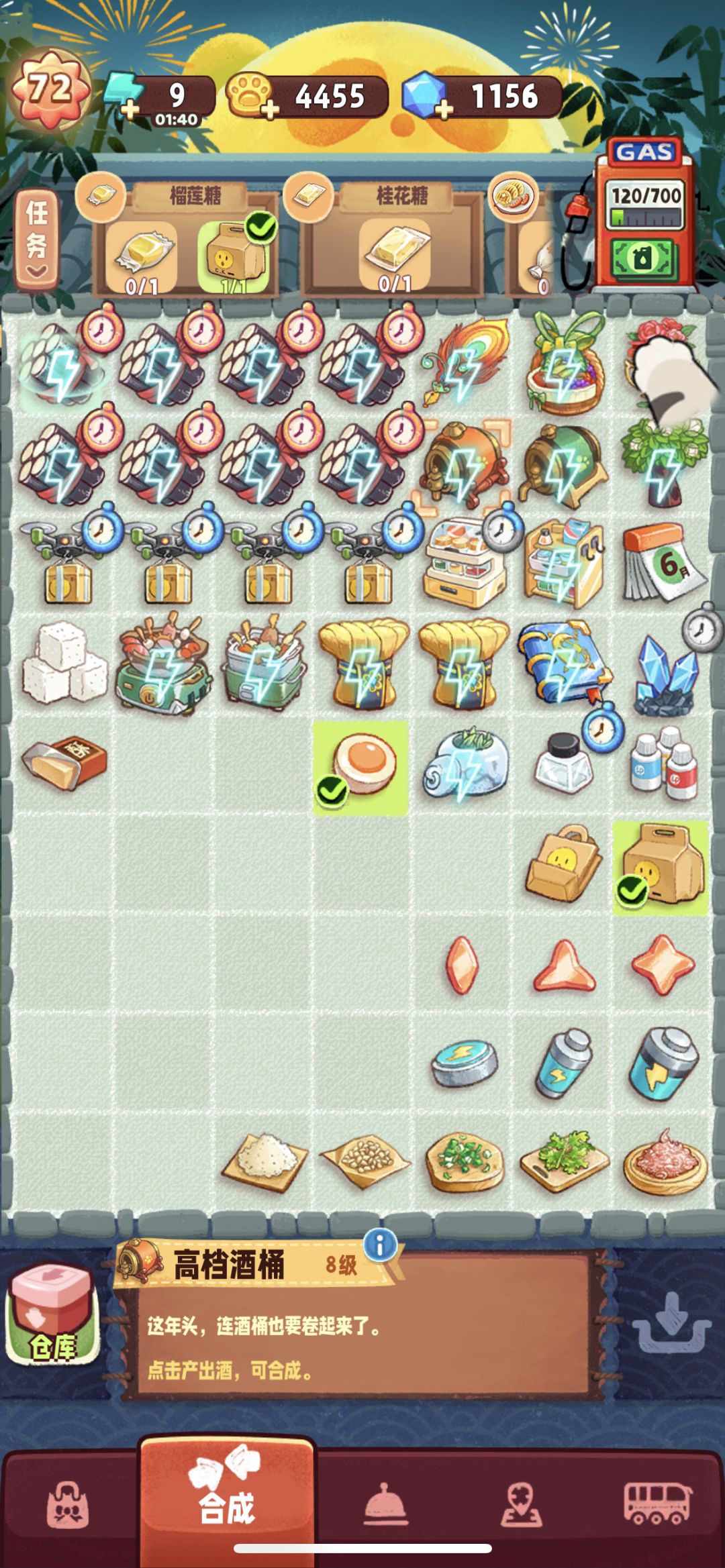 满级酒桶每轮CD30分钟,每轮产出20个,最大存储3轮,也就是每小时产出40个,刚好满足条件,只保留1个酒桶即可