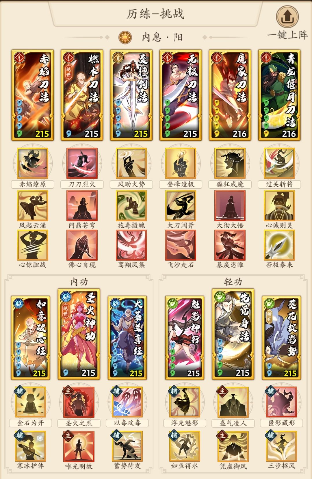 也正是因为招式不齐,配出了这套2绝世1稀有的平民刀法(除了鸾翔凤集,过完波斯招式就都能获得)。强度不错,没有明显短板,面面俱到,也能爬塔,同战都是五五开(狗头)。