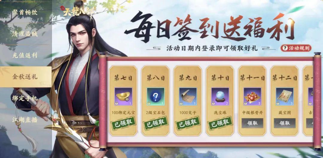金秋十月,每日豪礼相送签到福利已发送至第十天!今日登录签到,可领取第十日签到礼洗尘珠X2,活动截至10月11日,动动手指即可收获丰富奖励,少侠切莫错过!