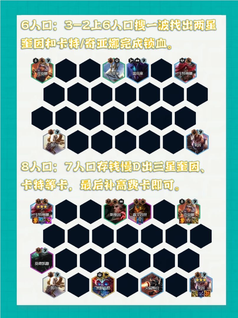 上赛季玩的朋友肯定记得盖伦。当时被删掉换奎因肯定不少人吐槽德玛过渡难了,实际上奎因的过渡能力也强。奎因虽然是后排,但是人家切的也是后排,切完还能切后,3-2能找到两星奎因基本就相当舒服了。