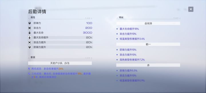狂猎后勤:攻击>同调>爆发能量回复(建议就拉攻击跟同调)