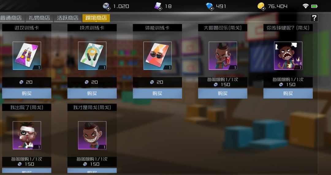 训练卡用于特训功能,是提升数值面板的重要道具之一,分为进攻训练卡、技能训练卡、体能训练卡。像c主要先把“弹跳”和“篮板”还有“对抗”能力升上去,各个位置优先特训最需要的属性,这里就不一一解释了。可以用钻石购买或者踢馆币进行兑换