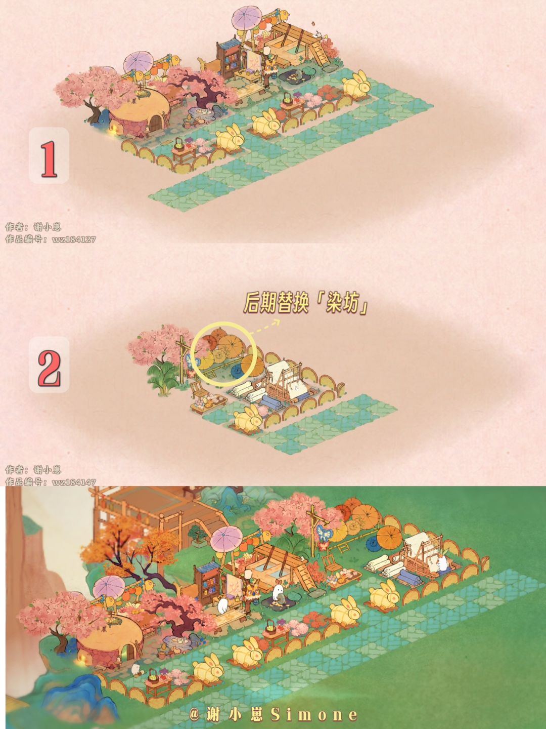 一键生产,夜间也要亮亮的。周边补花坛或者补其他建筑都挺好看哒,我等级不够还没开染坊,用纸伞江南占个坑先。还会继续出三岛的生产布局~