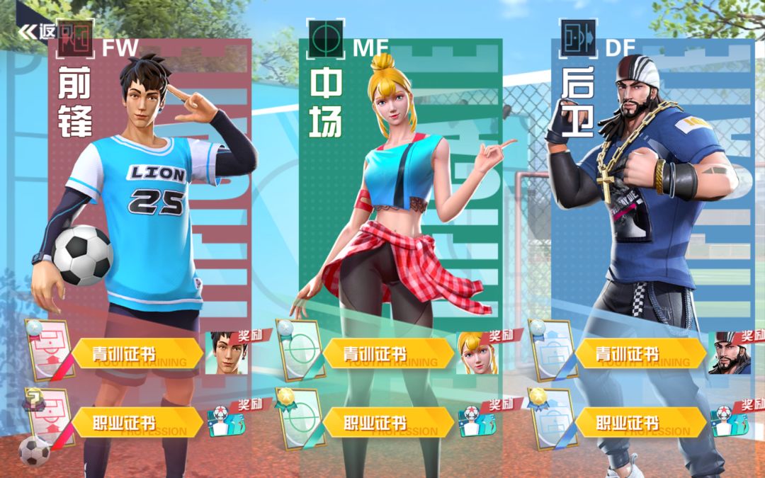 考取相应球员位置的青训证书后即可获得对应的球员,例如前锋挑战可获得阿磊,中场可获得桃乐丝,后卫可获得金权海。如果小伙伴们初始选定的球员是前锋阿磊,那么就可以通过以上方式最快获得另外两名球员。下面介绍一下考取前锋青训证书和后卫职业证书的例子: