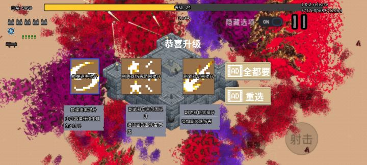 圣剑技能的光波能打到屏幕外,也不用复活,死了就看广告双倍钱,一次6-7万。