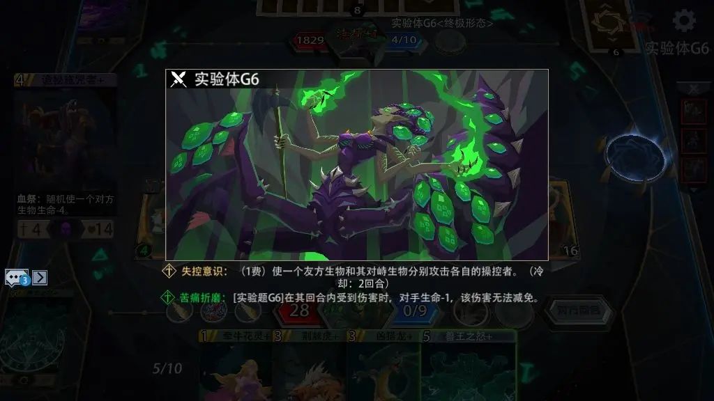 1、该首领前几回合的行动基本上是先咒术师、再野蛮斗士、再诡异施咒者(在我方不挡对位怪的情况下),所以前期可以先上低费怪放对方怪的对位,触发对方1费主动,延缓对方上施咒者的节奏。