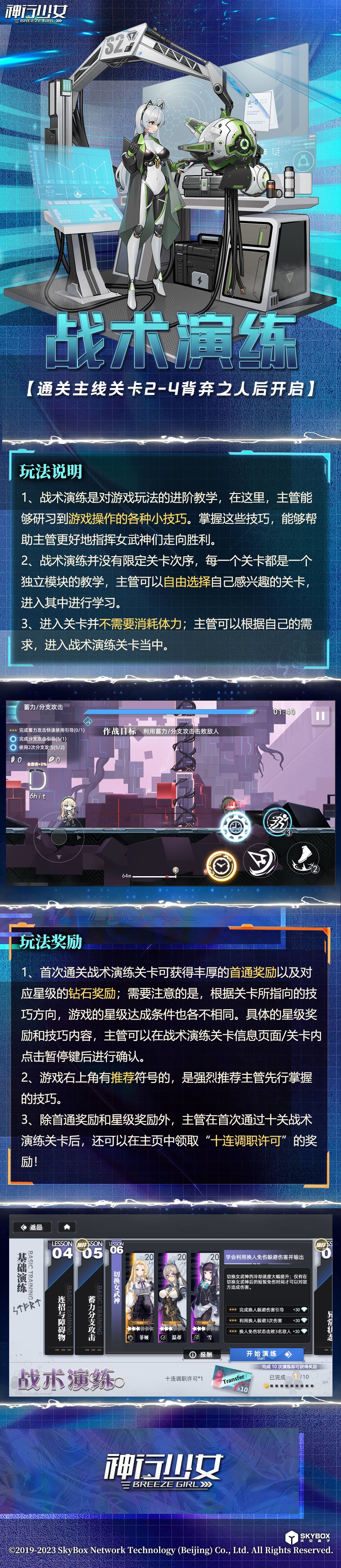主管大大们在战术演练中,不仅可以学到很多战斗中的实用技巧,通关一定关卡数量后,还可以免费获得十连调职许可哦!