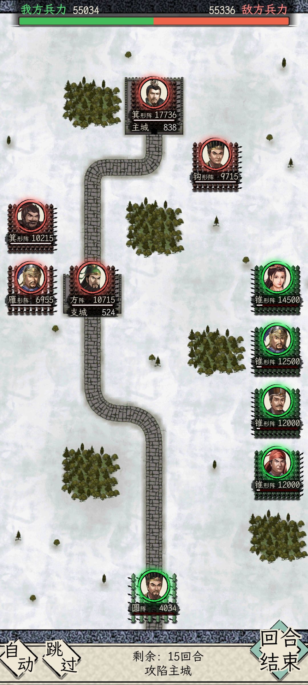 完美的分布,尖刀直接溜过去拆城,赢了时他们还有接近6w兵,下回合这6w兵就是我的了,完美~~