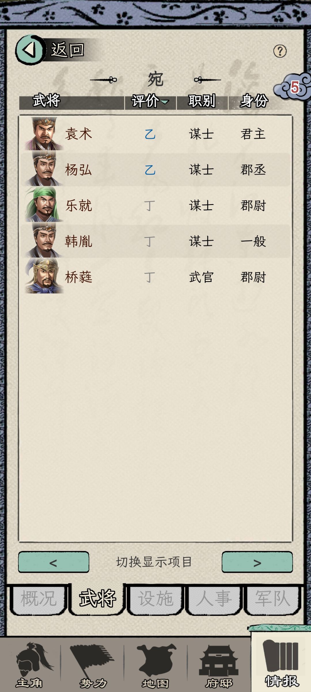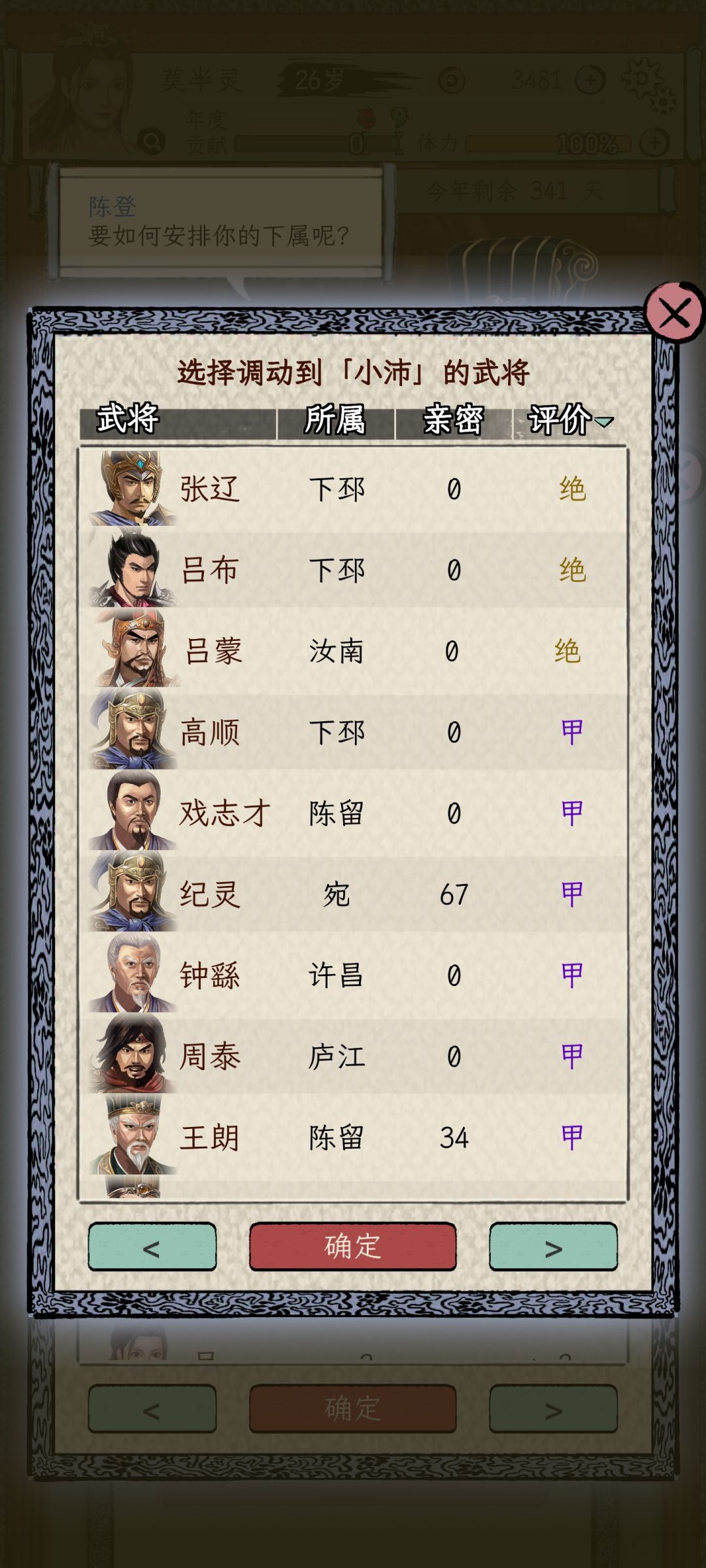 本来准备好SL武将的,没想到袁术很大气,大部分人都给我了,内政最高的yanxiang,军事最高的纪灵,都给了,于是直接开始太守生涯