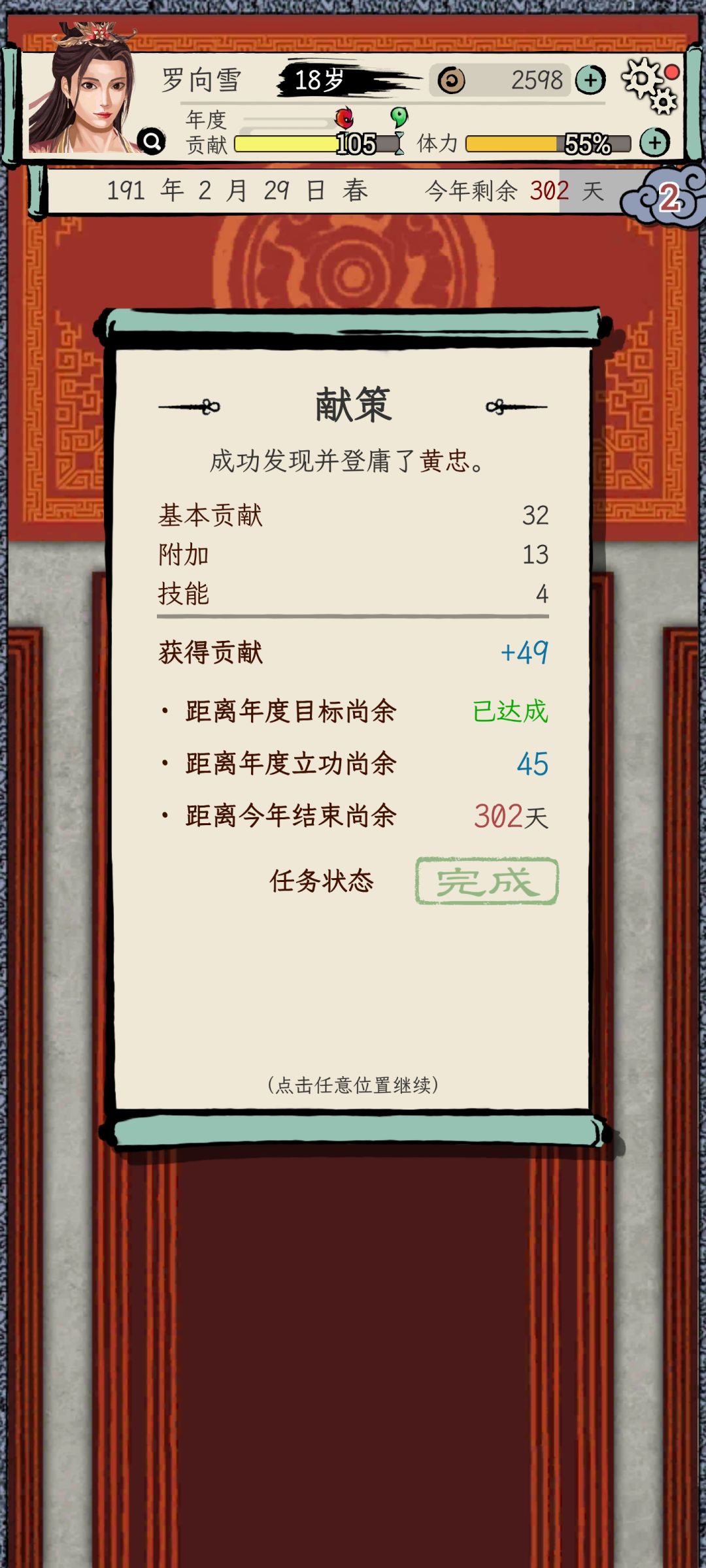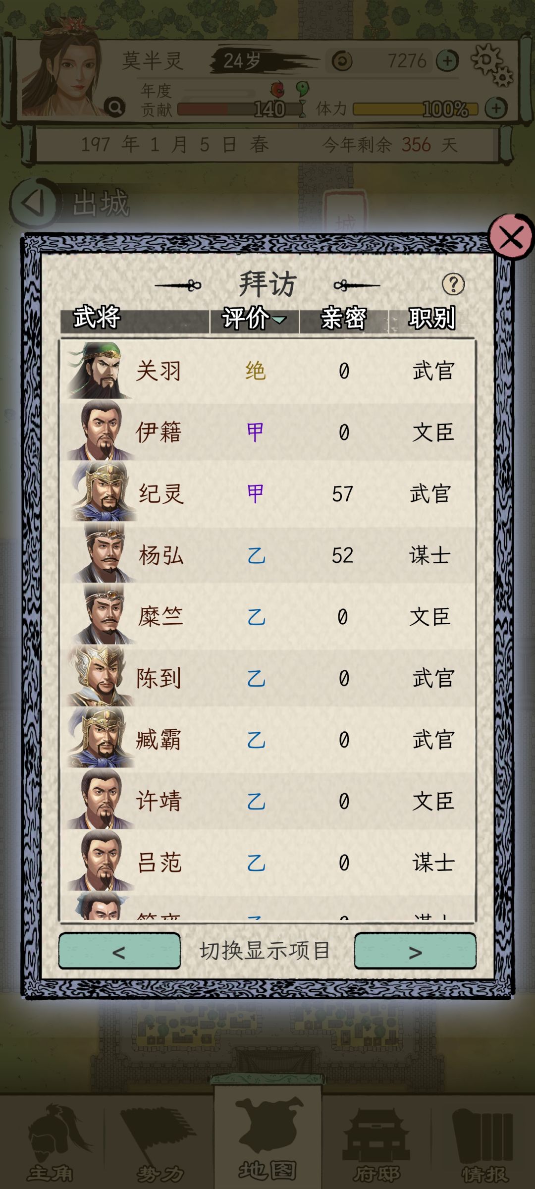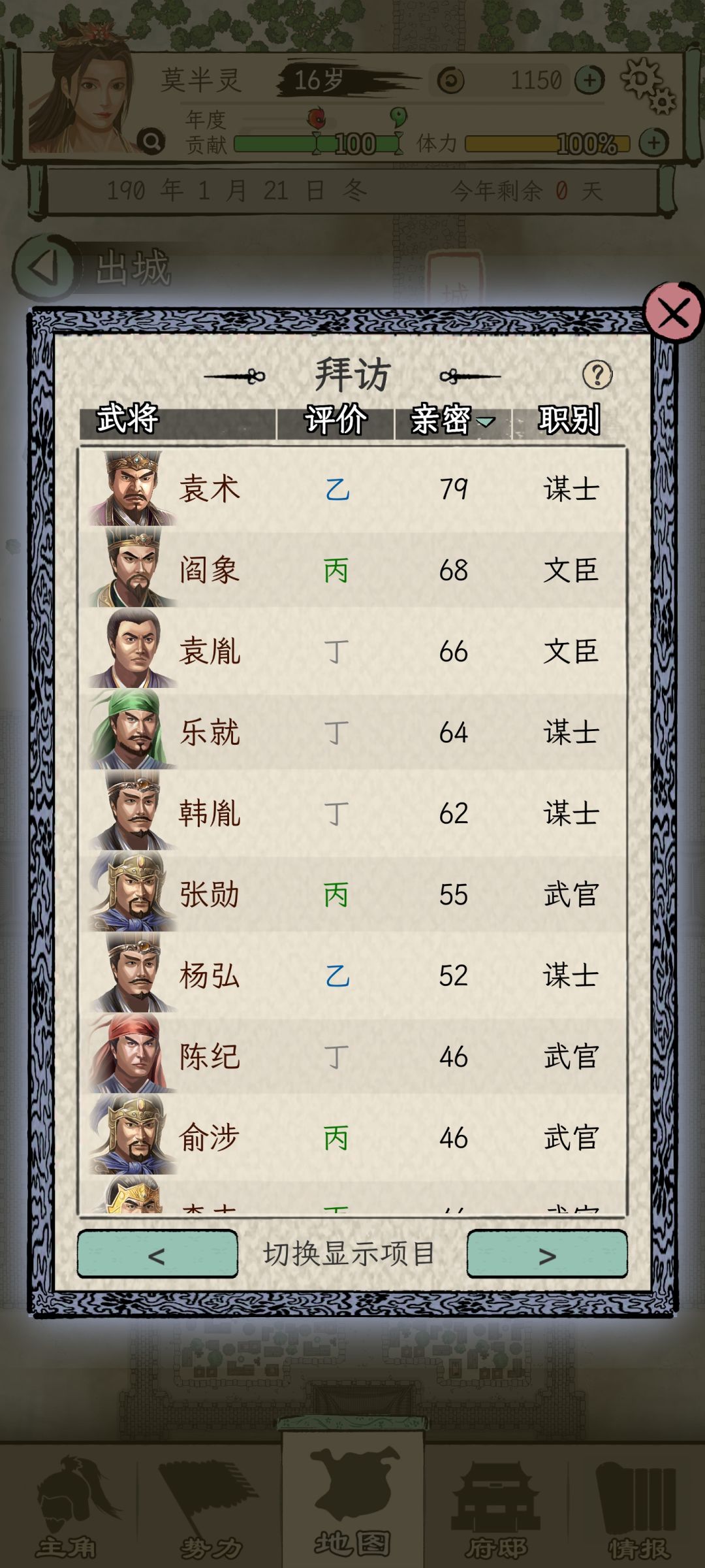 其二在于,如果当前城市没有登庸类任务,那就切换治所到别的城市,再切换回来,献策的内容会刷新,切换多了容易游戏报错,但目前没影响到我继续玩。