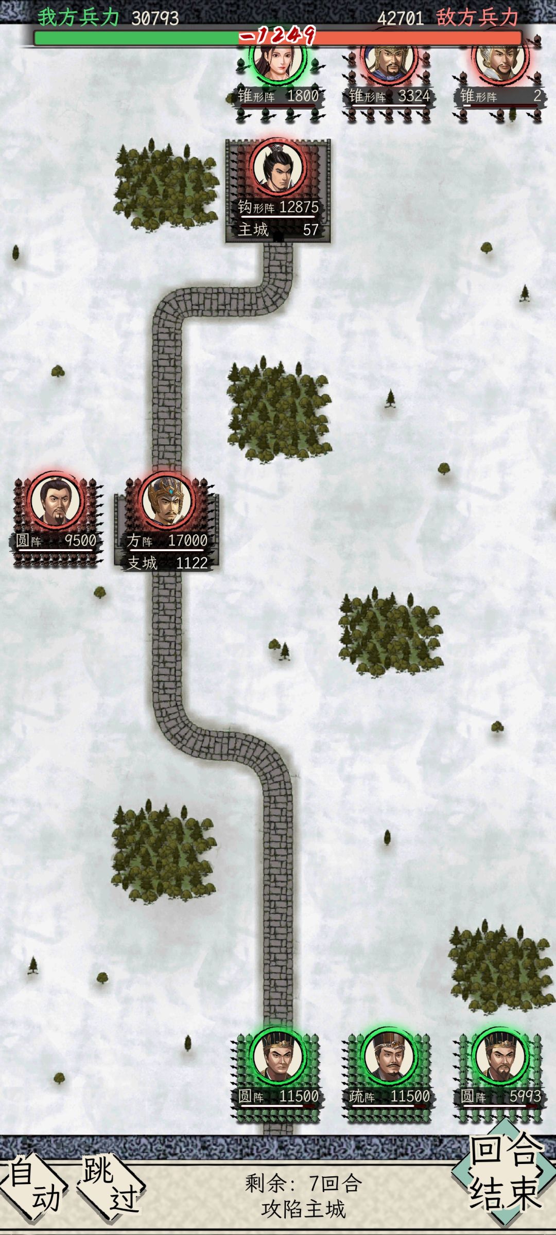 1- 有两三次失误,天数走完之后,在别的城里,来不及且主城到兵最多的那个城,导致几个难打的大城进度慢了进度。