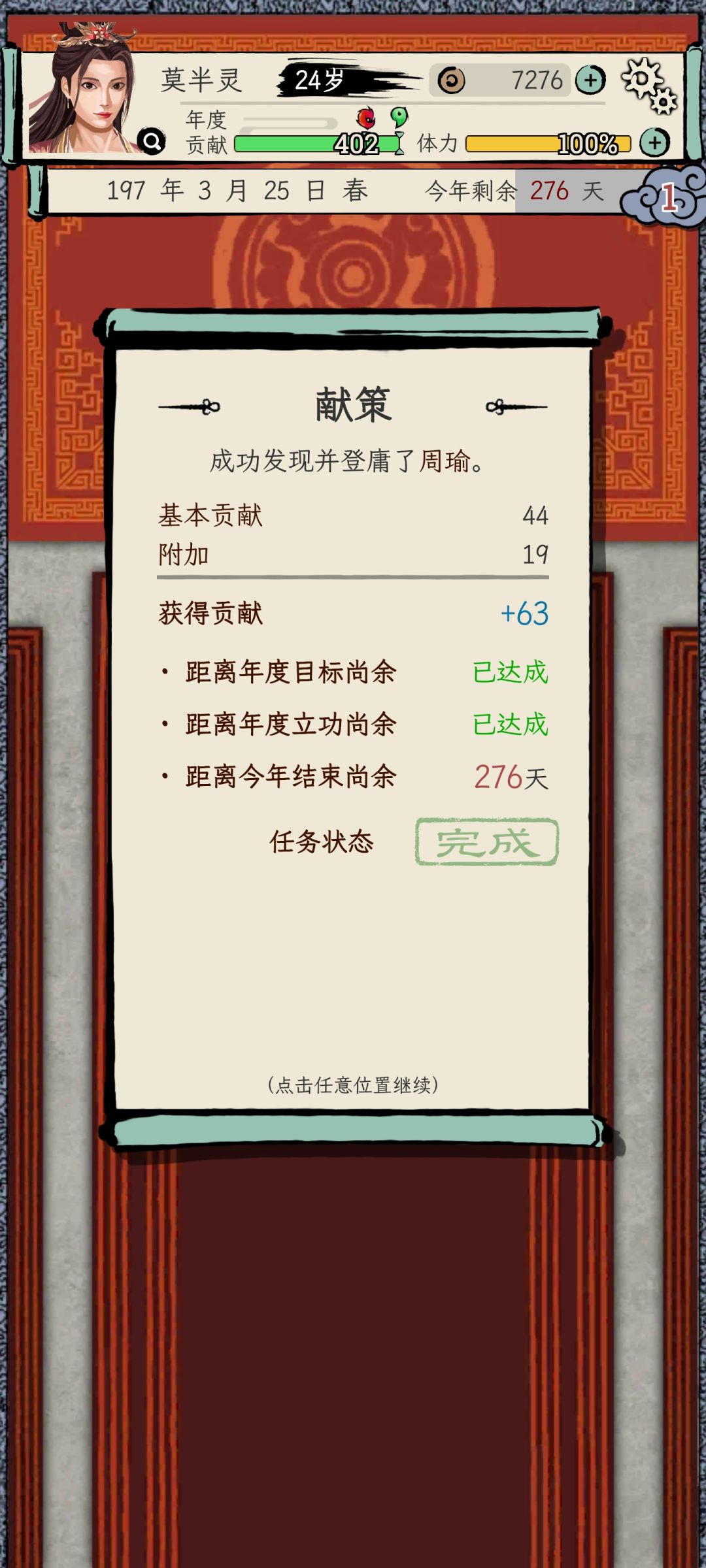 因为明天要去玩新的游戏了,所以昨天和今天猛猛肝了段时间,打出来一个几乎是极限的档:29岁,刚刚四品,一统天下!