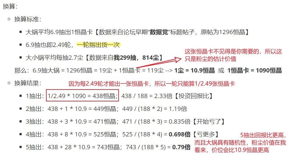 * ①到r4后期前:一般很少碰大锅,此时想要啥抽啥小锅,而小锅500多恒晶就能出一个想要的恒晶卡,此时一张恒晶自选价值一般【不如1090恒晶】