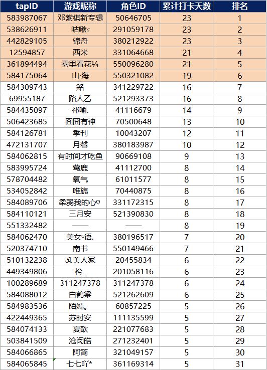 2. 打卡内容与格式:游戏昵称+游戏ID+天数