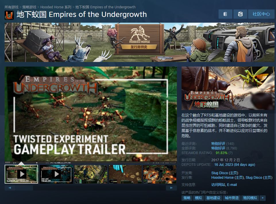 而今天给大家安利的,就是特别好评的《地下蚁国》(Empires of the Undergrowth)