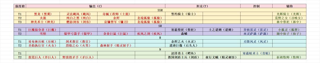 【英雄强度榜(按品质分段)】