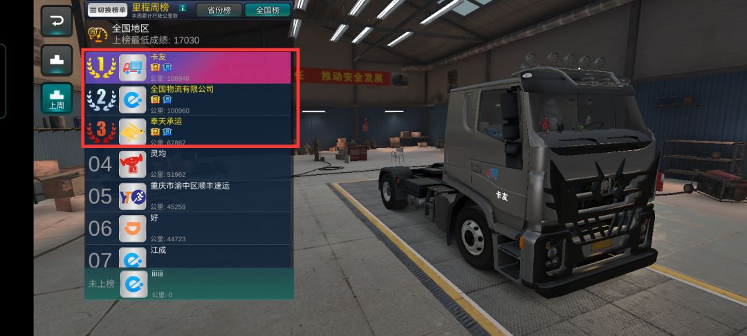 上周里程周榜