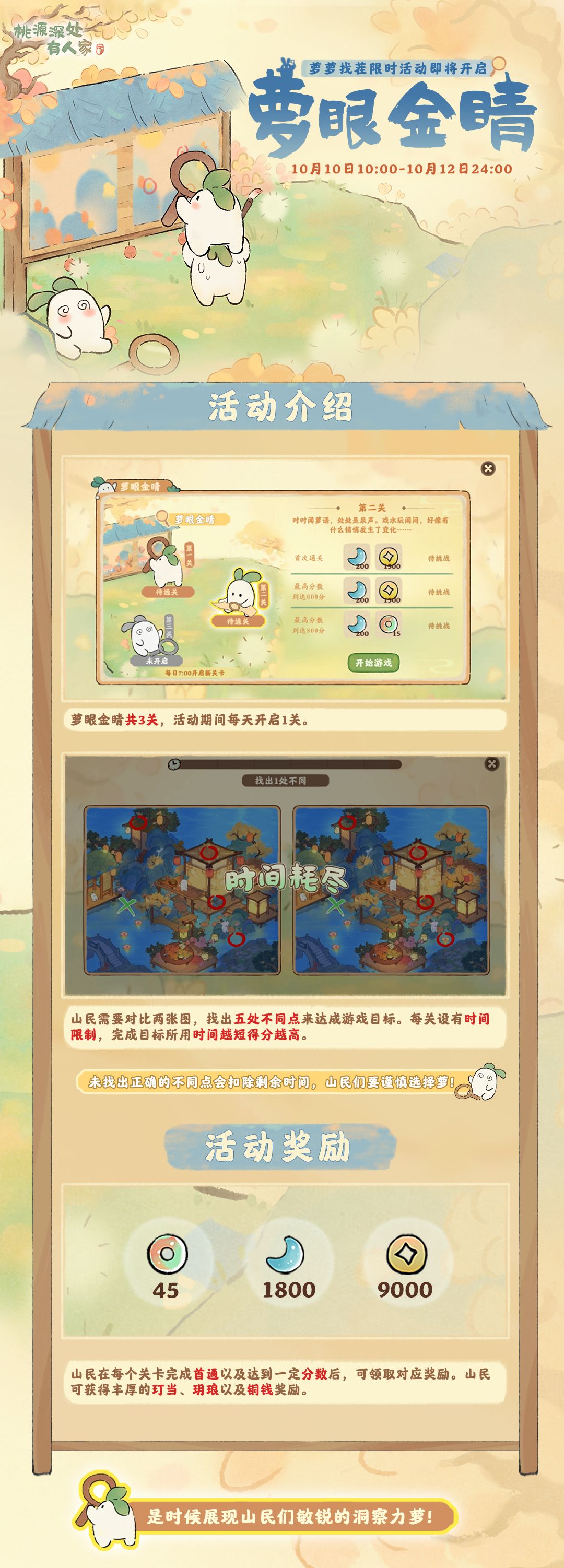 山民们所期待的「萝眼金睛」活动将会在10月10日10:00-10月12日24:00上线萝萝山萝!