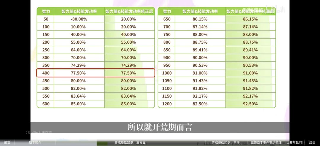 智力:智力影响技能发动率,300-400就够用了,智力也影响下坡的速度,下坡会有一个下坡模式,智力越高越不容易退出这个模式,会保持高一些速度(头马抢第一,力智很重要)