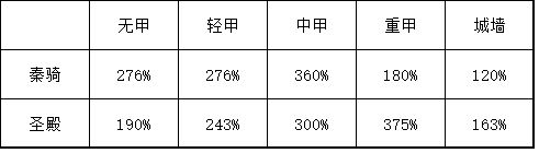 以上数据取自0星军团卡属性。结论为:秦骑,无甲大优,轻甲中甲小优,重甲大劣,城墙小劣。