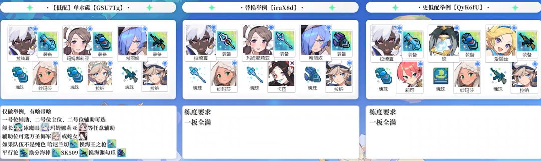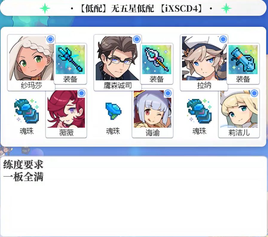 单人挑战难度也不高,上述任意直击盘带个奶就可以轻松通过,下面提供一个供萌新使用的极低配盘
