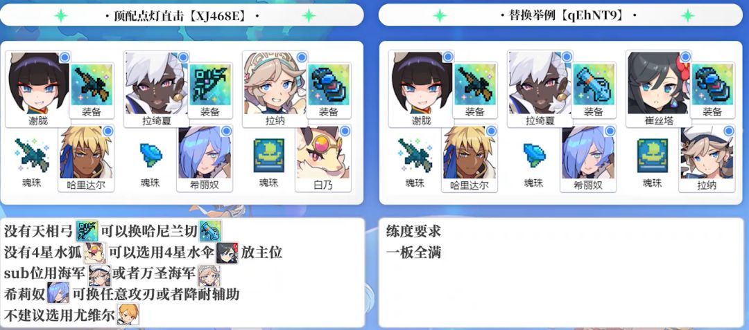 超级难度下推荐使用水直击,由于点灯直击迎来狗拳和万圣水兵,DB直击则是迎来了星冰乐和泳狐,所以配队有了新的构筑,需要注意的是由于需要boss释放动作延长角色buff时间所以不推荐使用冰魔女、飞燕等顿足角色,同时boss有转阶段清除debuff所以也不推荐使用yyr等毒角色。