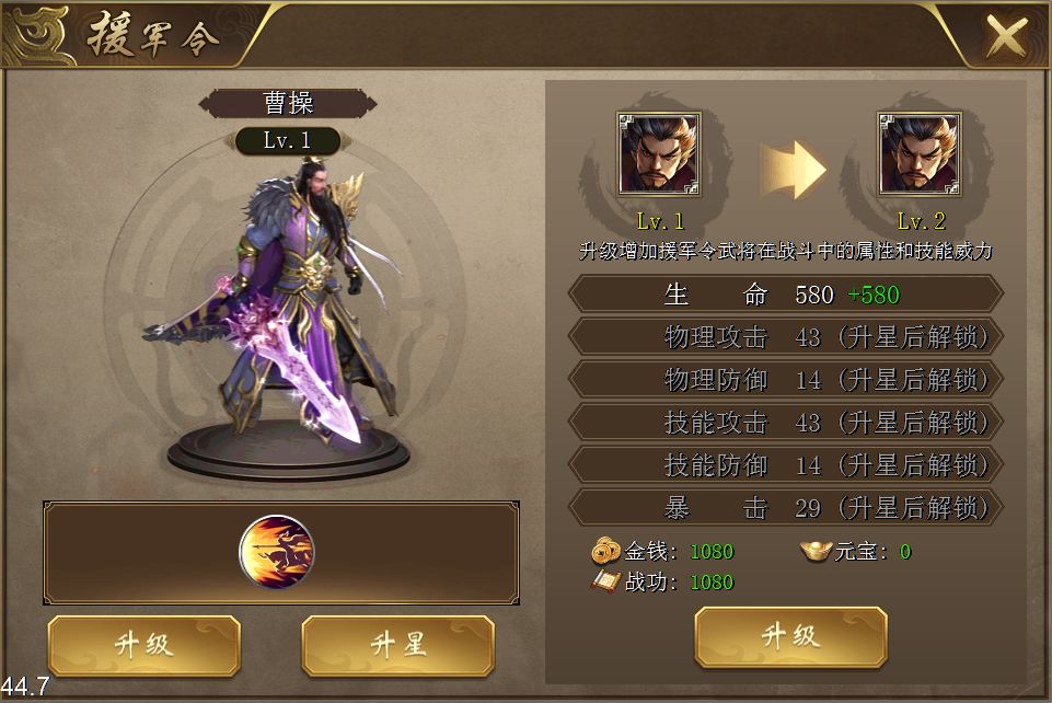 2、援军令可在副本战斗中使用,可以控制援军令武将进行战斗