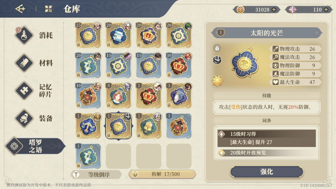 a.和【武器,防具】是另一套系统,没有升星,但有品质区分。最关键的是 学习了原神的圣遗物模式,词条随机,升级也随机,提升等级才能看到下一阶段随机词条是什么。---